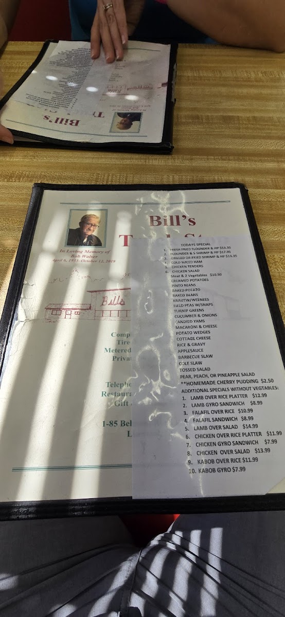 Overall, Bill’s Truck Stop provides approachable, dependable dishes that fit well with the relaxed environment—ideal for anyone seeking straightforward, hearty fare in a place that feels welcoming and familiar.